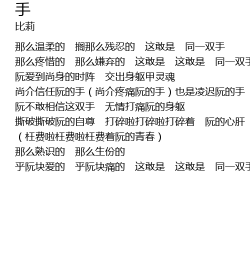 | 那么温柔的 搁那么残忍的 这敢是 同一双手 | |