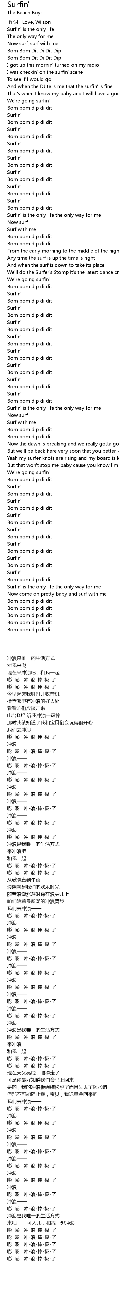 | [00:39.18] | Surfin' is the only life the only way for me |