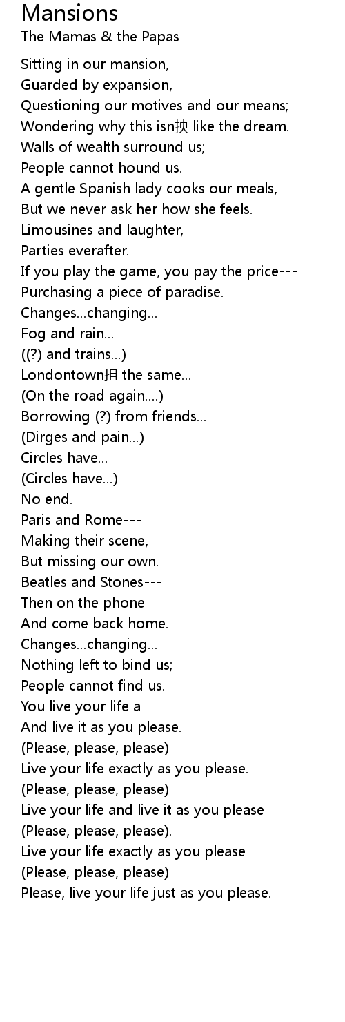 | Sitting in our mansion, | |