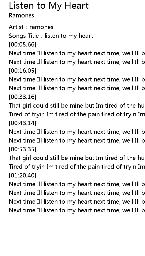 | [00:03.20] | Songs Title: listen to my heart |