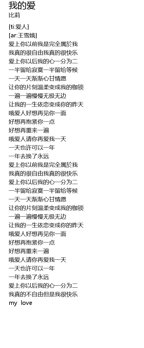 | [01:33.53] | 哦爱人请你再爱我一天 |