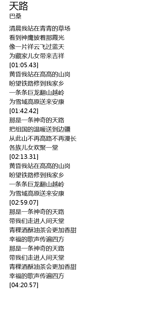 | [01:33.91] | 为雪域高原送来安康 |