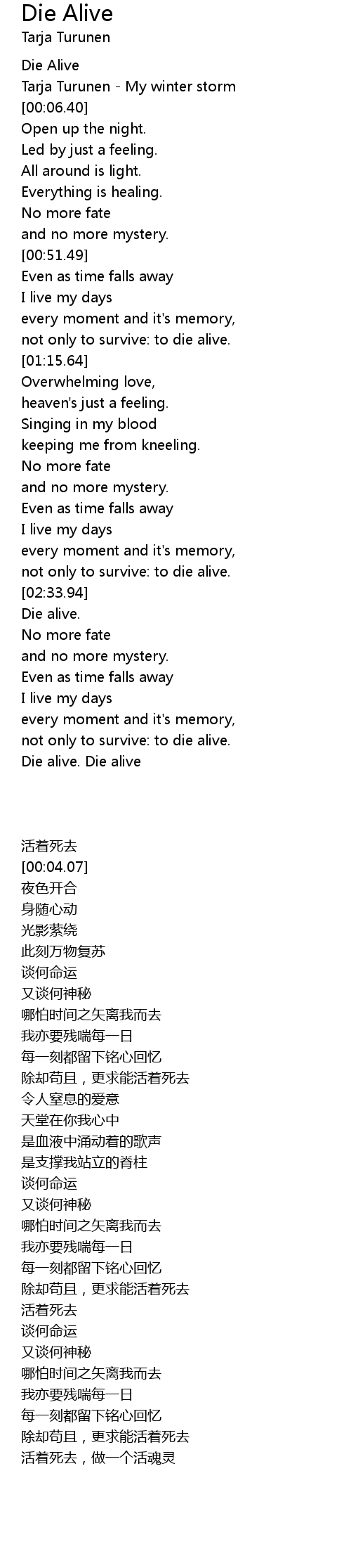 Die alive. Die alive |