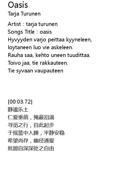 | [00:03.72] | Artist: tarja turunen |