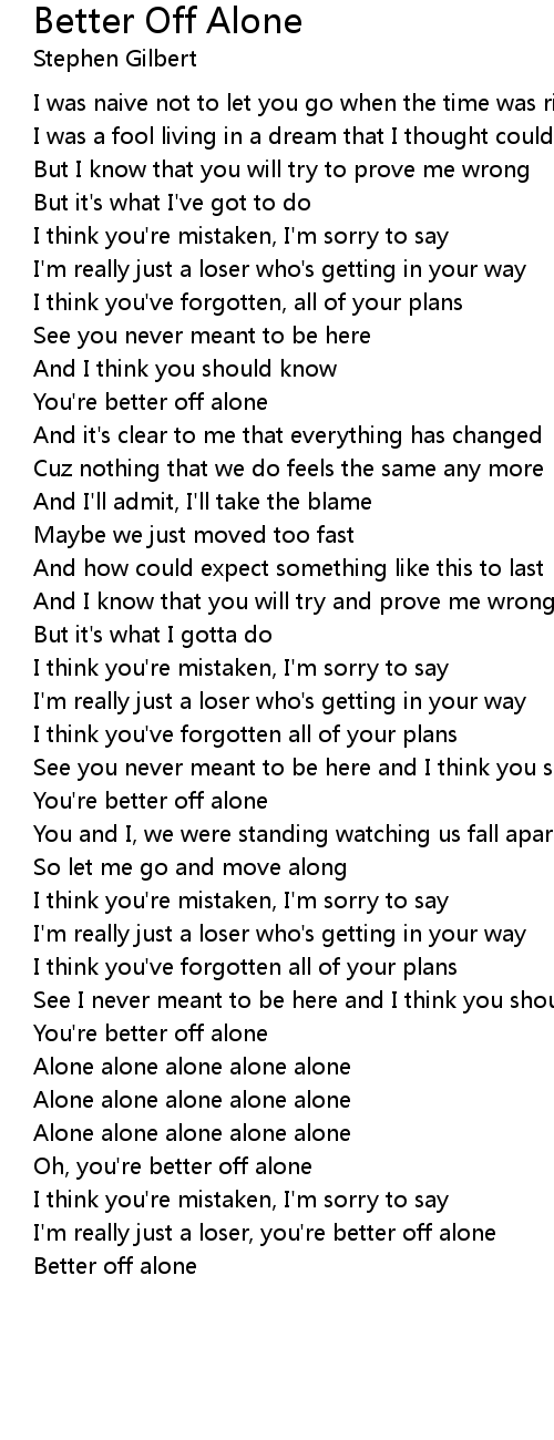 Oh, you're better off alone |