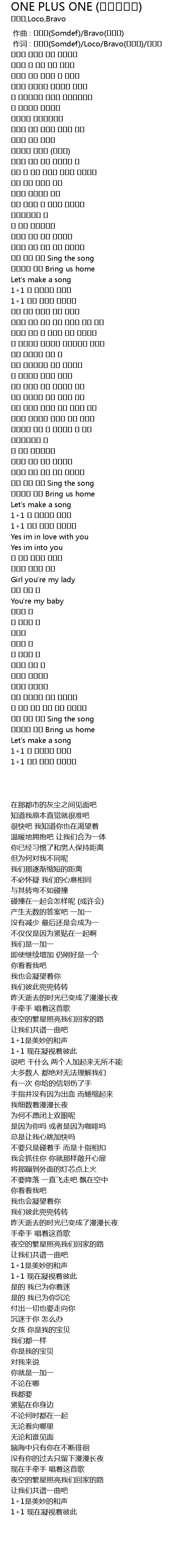 | [02:50.30] | 원 플러스 원 |