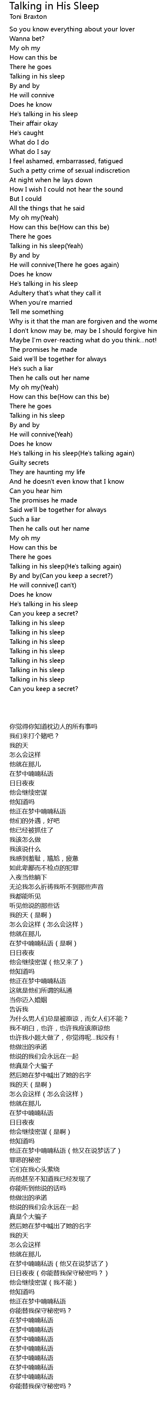 Talking in his sleep(Yeah) |