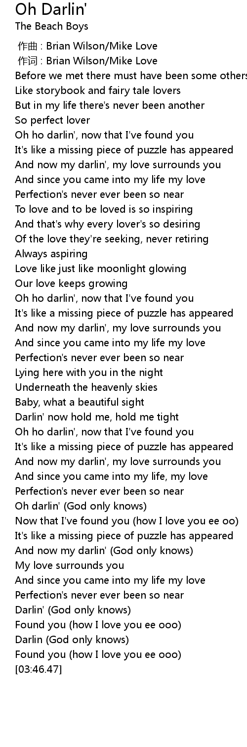 | [00:43.23] | And now my darlin', my love surrounds you |