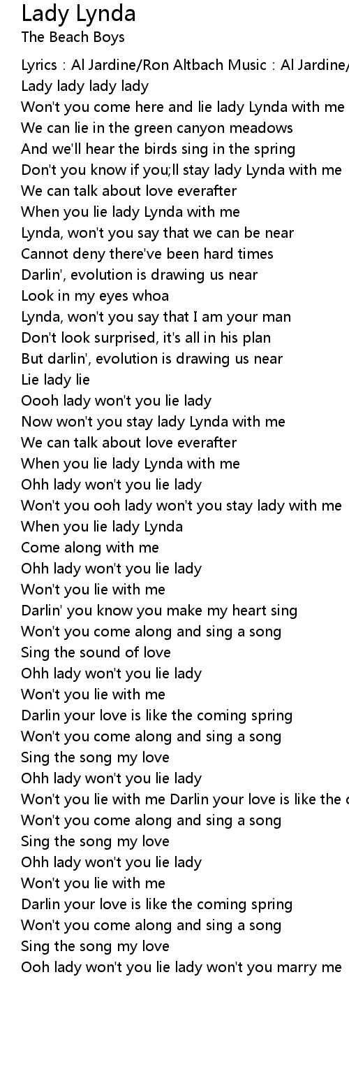 | Won' t you come here and lie lady Lynda with me | |
