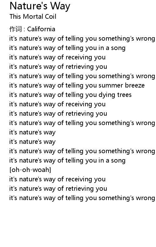 | it' s nature' s way of telling you in a song | |