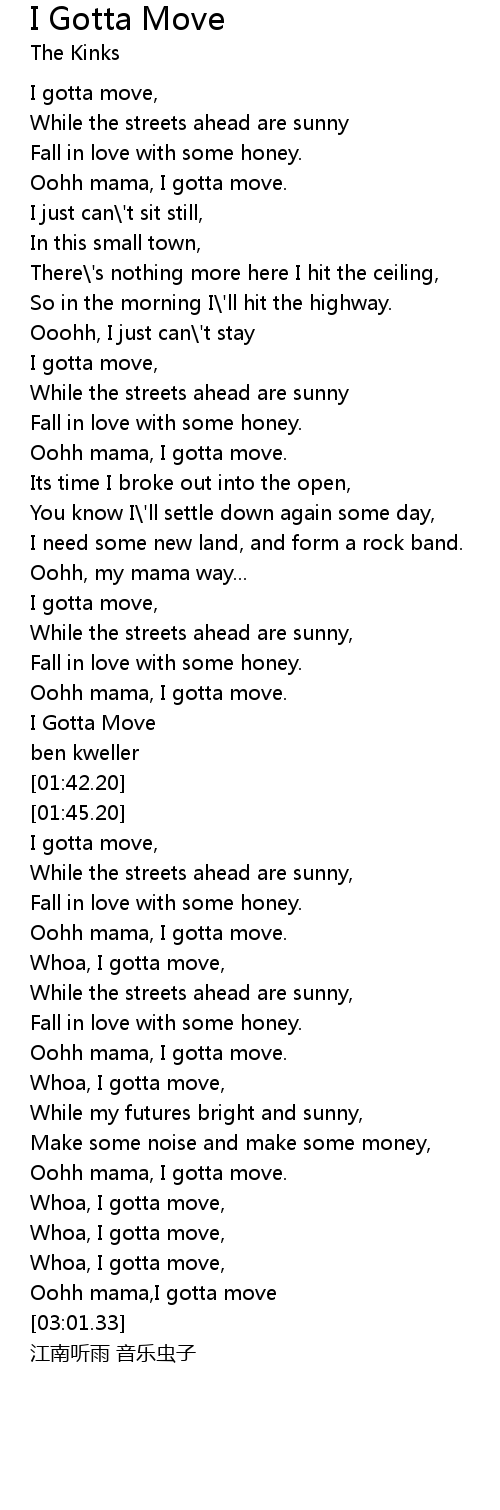 | [01:30.91] | I Gotta Move |