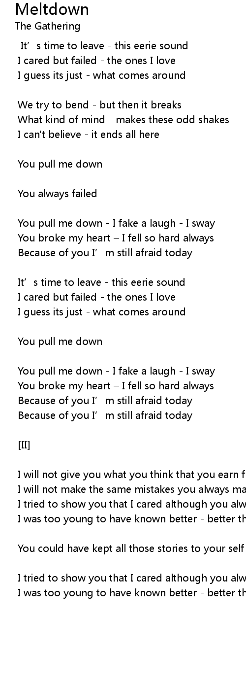 | You pull me down - I fake a laugh - I sway | |