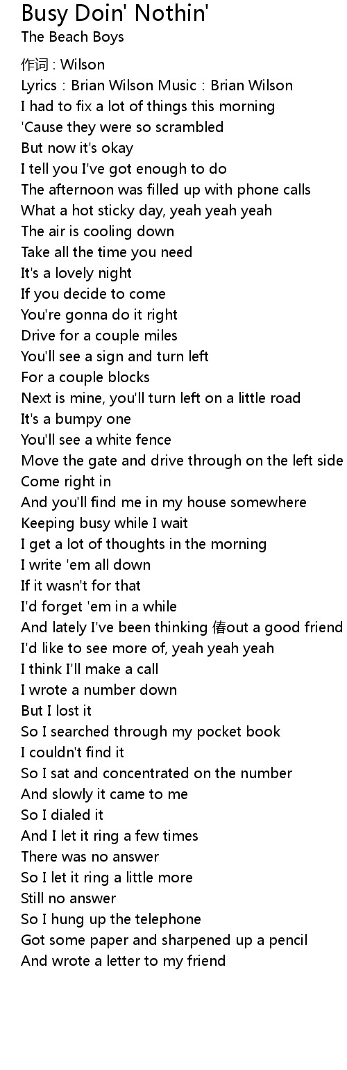 | Song | Busy Doin' Nothin' |