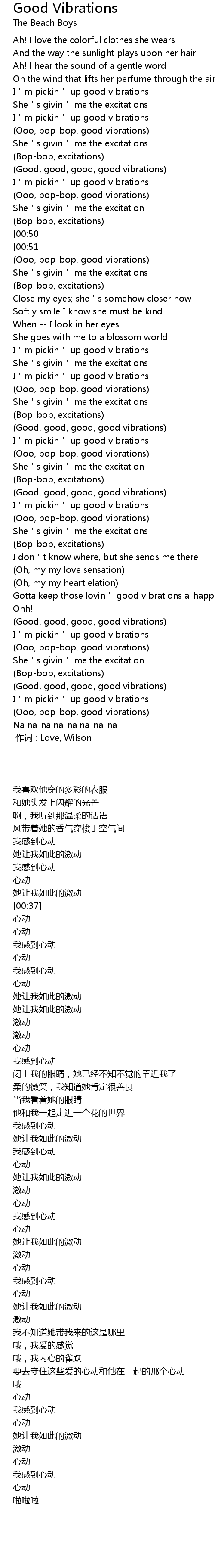 | [02:21] | Gotta keep those lovin good vibrations ahappenin with her |