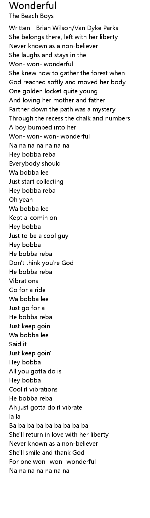 | Won- won- wonderful | |