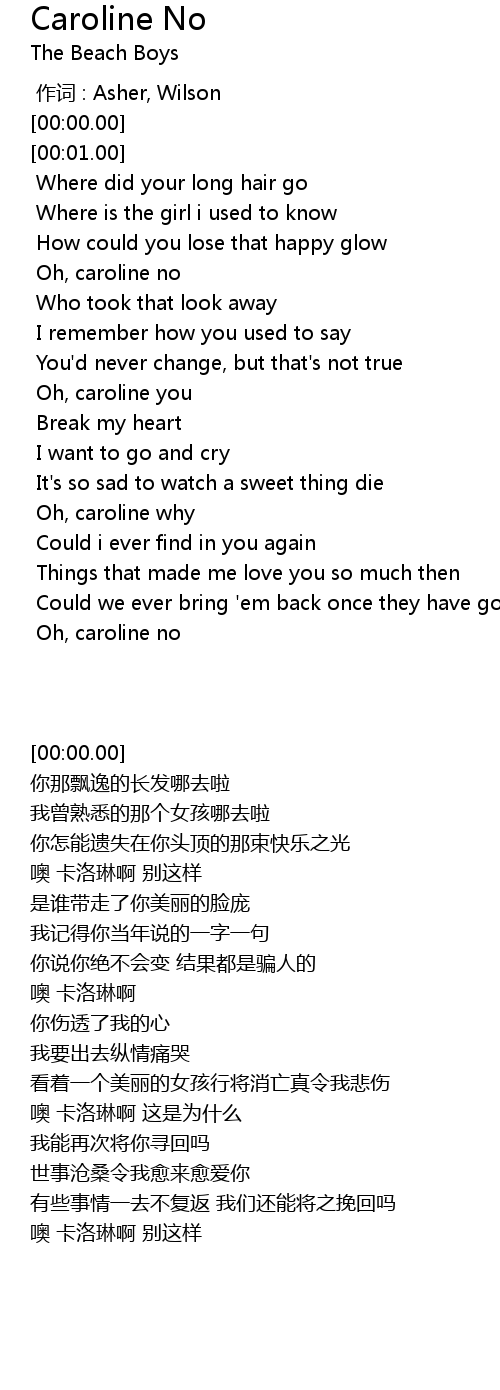 | [01:36.22] | Oh, caroline no |