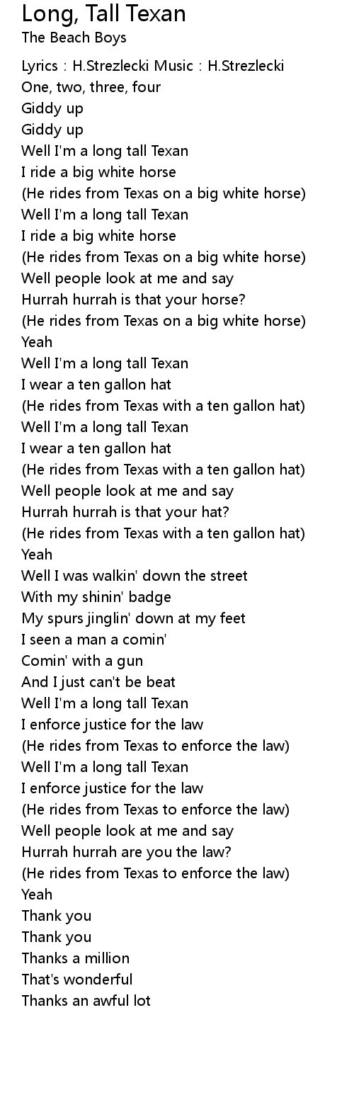 | Well I' m a long tall Texan | |