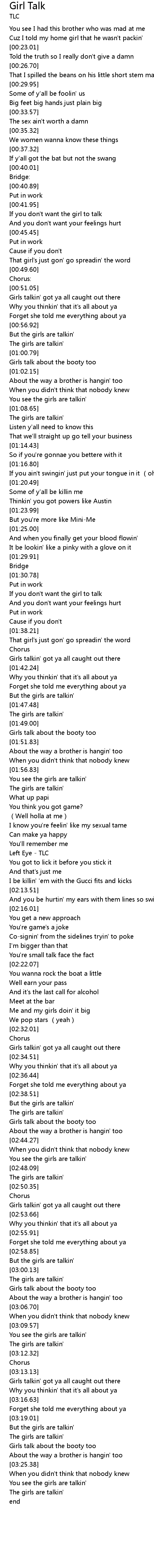 | [00:52.17] | Girls talkin' got ya all caught out there |