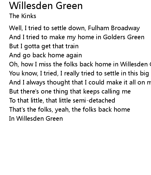 | Oh, how I miss the folks back home in Willesden Green | |