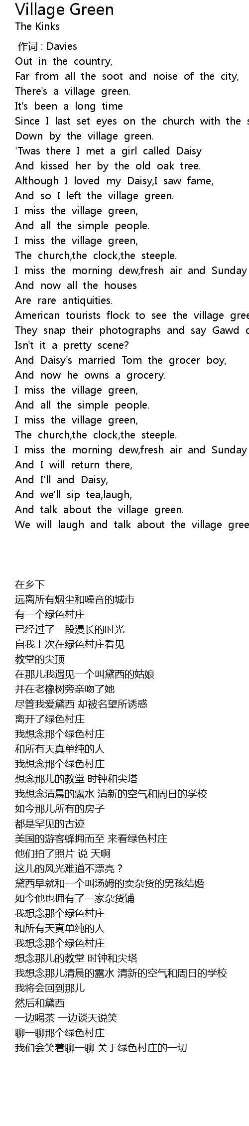 | [00:25.438] | Down by the village green. |
