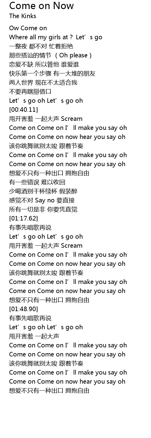 | [02:20.21] | Come on Come on I’ll make you say oh |
