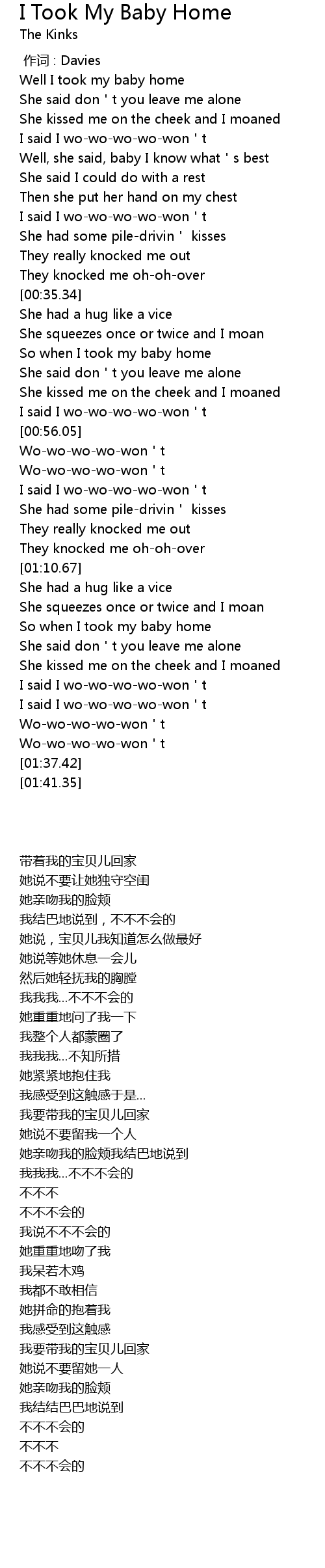 | [01:23.11] | She kissed me on the cheek and I moaned |