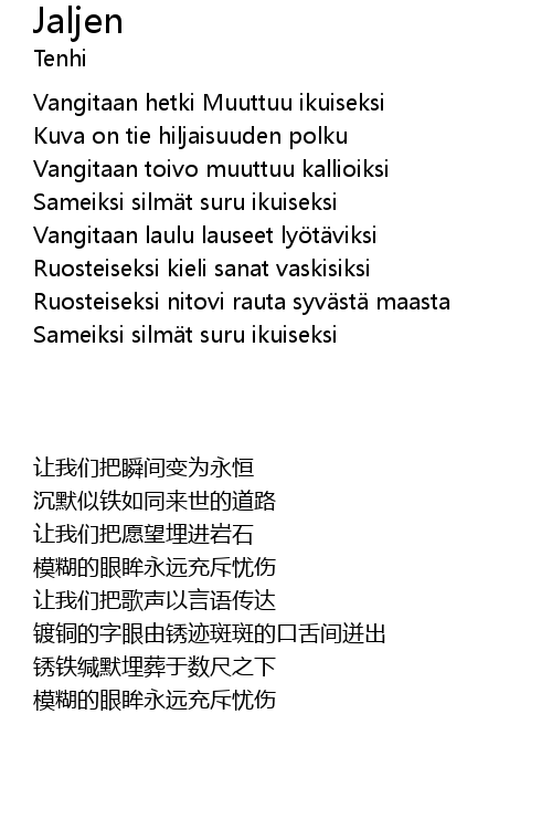 | [02:14.94] | Sameiksi silmät suru ikuiseksi |