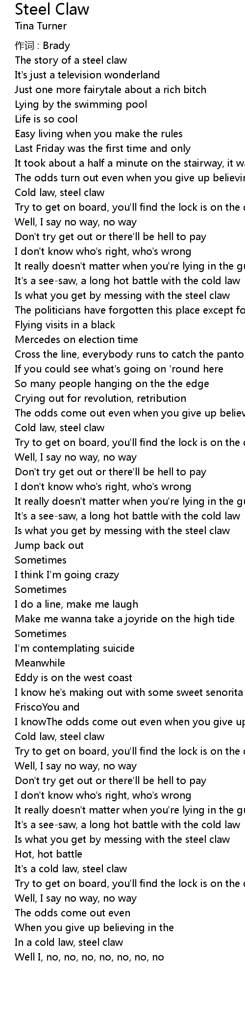 | In a cold law, steel claw | |