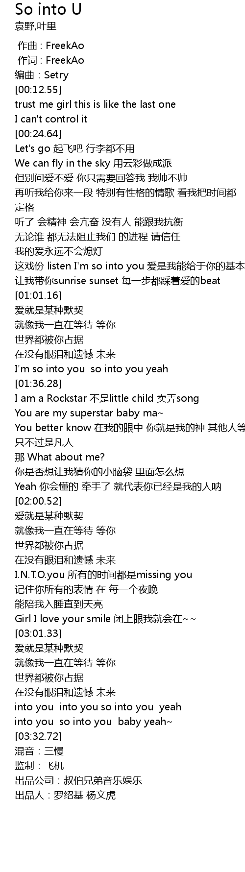 | [00:52.32] | 这戏份 listen I'm so into you 爱是我能给于你的基本积分 |