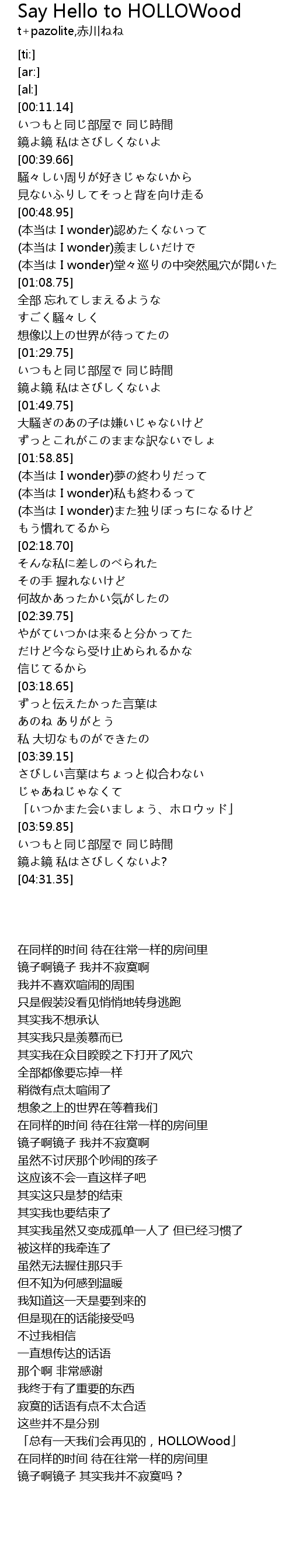 | [04:27.40] | 鏡よ鏡 私はさびしくないよ? |