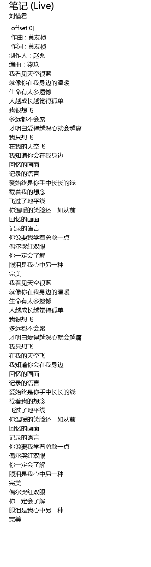 | [00:00.000] | 作曲 : 黄友桢 |
