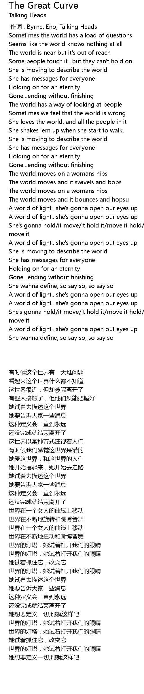 | [00:00.00] | 作词 : Byrne, Eno, Talking Heads |