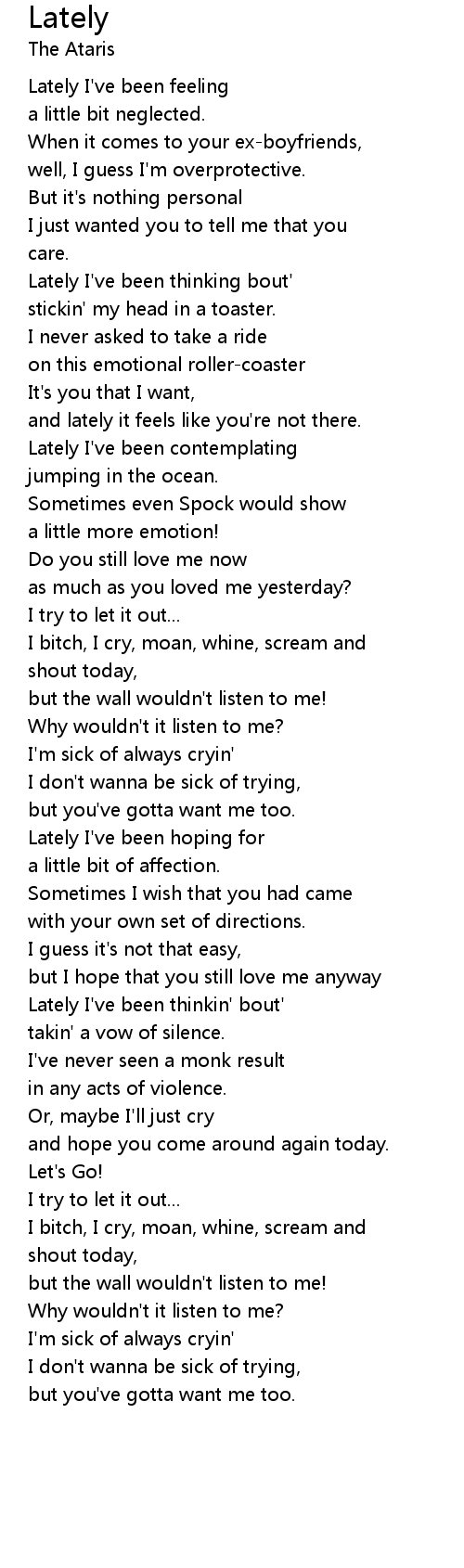 Lately I've been feeling |
