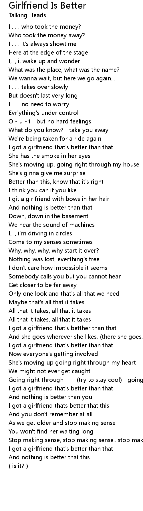 | I got a girlfriend that's better than that | |