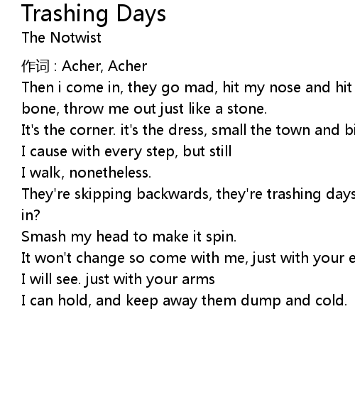 | Song | Trashing Days |