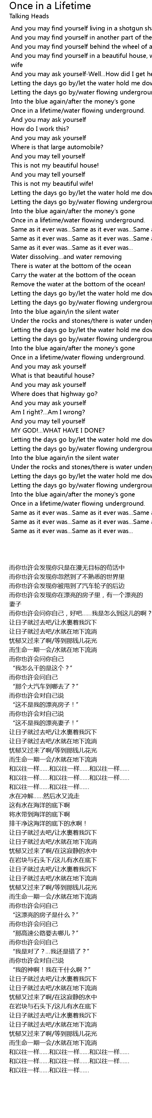 | [03:25.10] | Same as it ever was... Same as it ever was... Same as it ever was... |