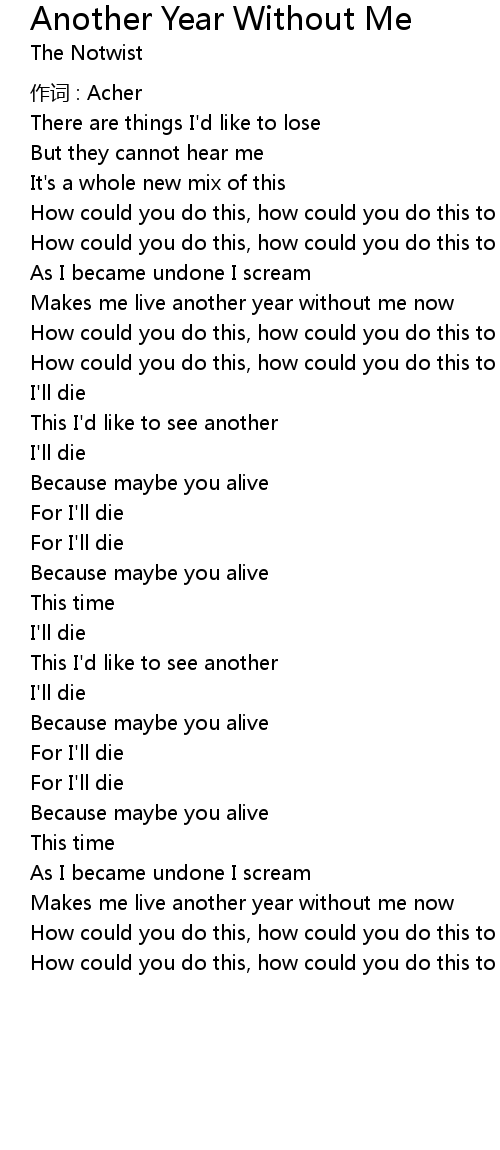| Makes me live another year without me now | |