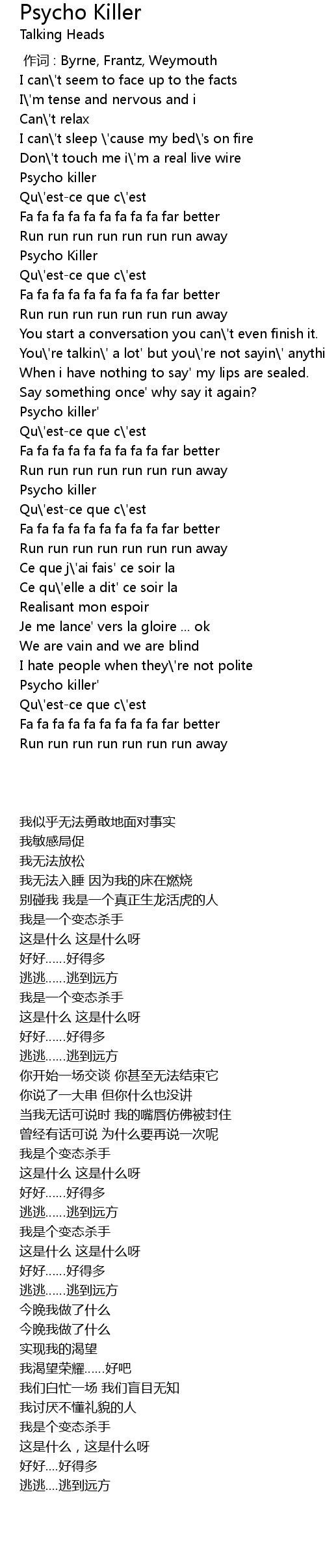 | [00:00.00] | 作词 : Byrne, Frantz, Weymouth |