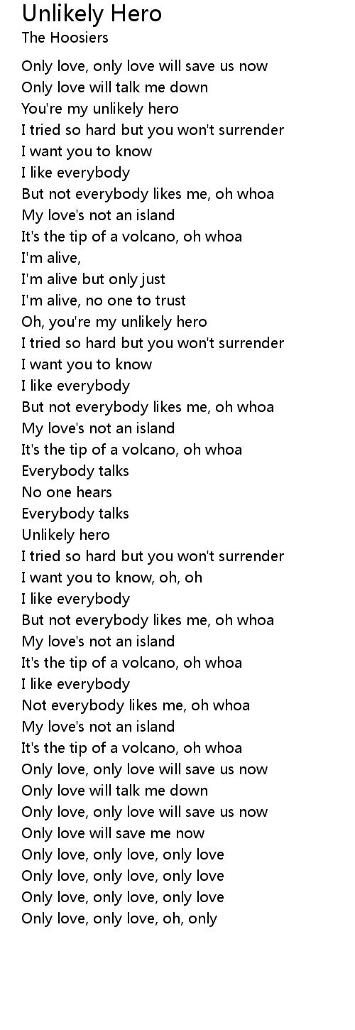 Oh, you're my unlikely hero |
