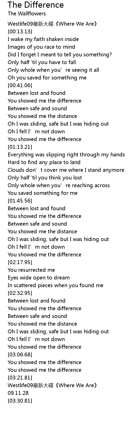 | [00:05.13] | Westlife09 zui xin da die Where We Are |