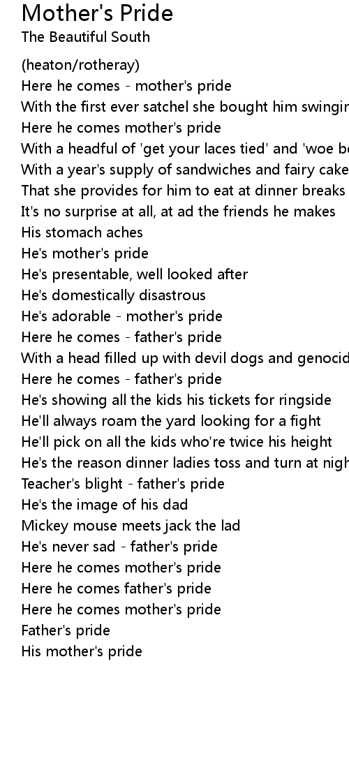 Here he comes mother's pride |