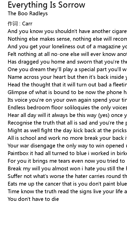 | Song | Everything Is Sorrow |