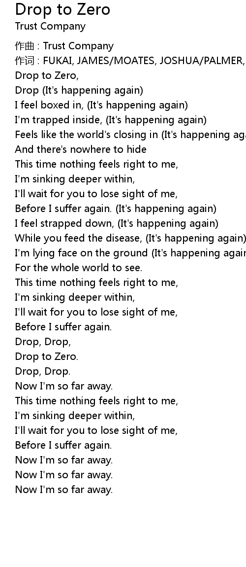 | 作词 : FUKAI, JAMES/MOATES, JOSHUA/PALMER, KEVIN/SINGLETON, JASON | |