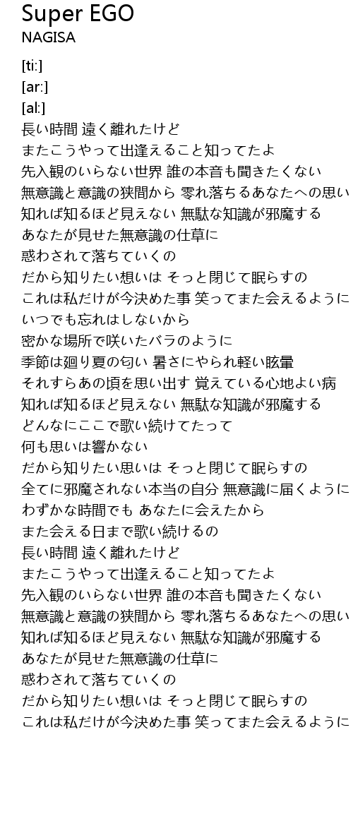 | [00:48.33] | 先入観のいらない世界 誰の本音も聞きたくない |