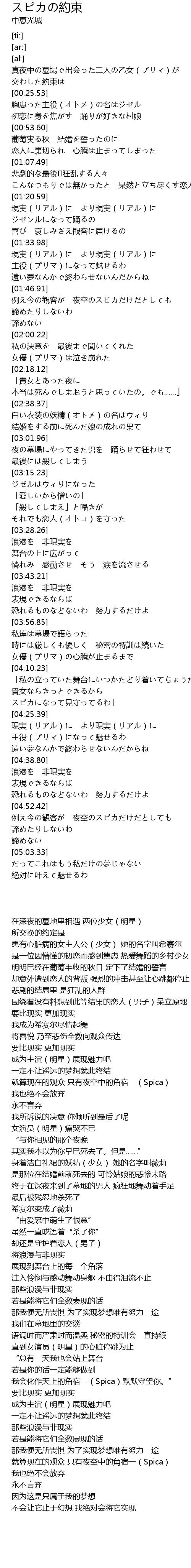 | [00:17.59] | 真夜中の墓場で出会った二人の乙女(プリマ)が |