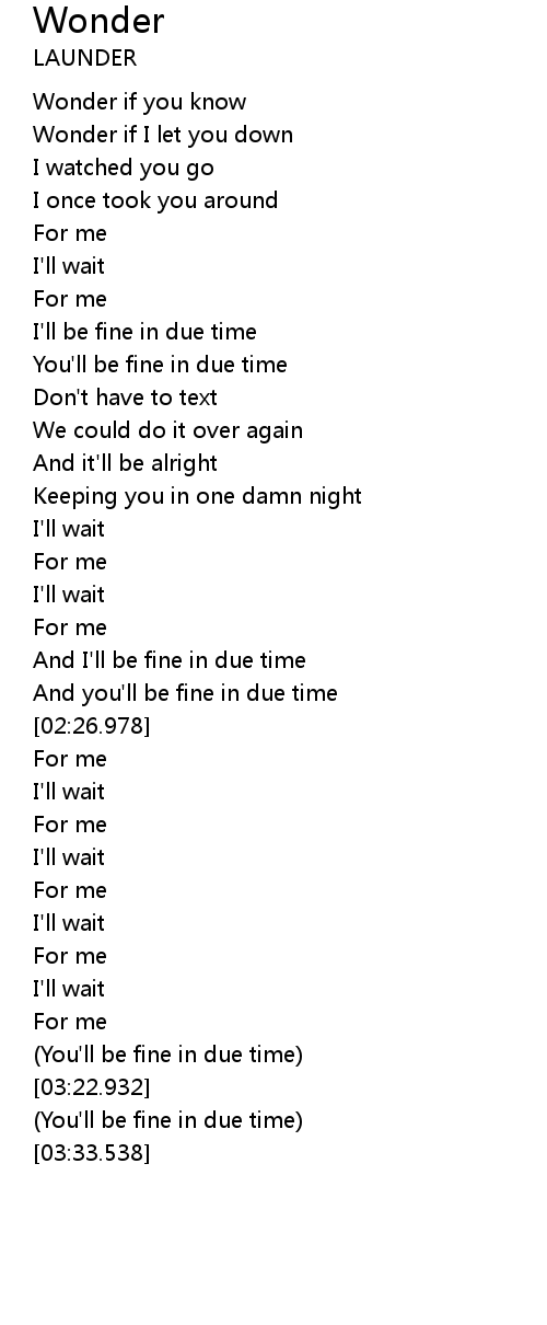 And I'll be fine in due time |