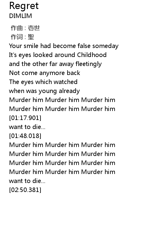 | [01:08.306] | Murder him Murder him Murder him |
