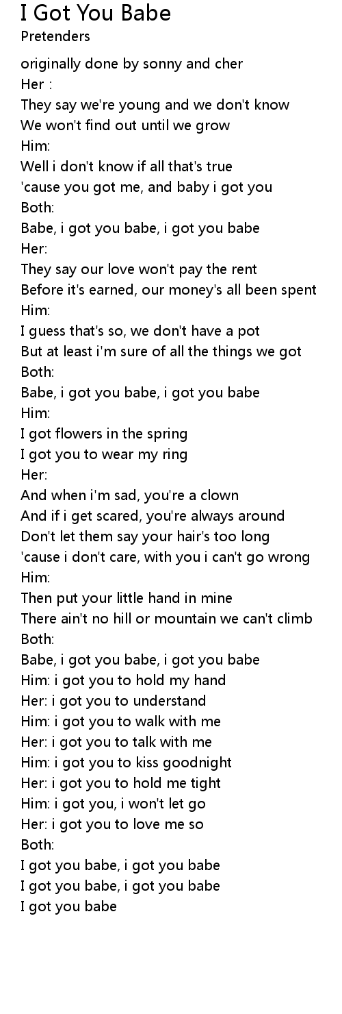 | Babe, i got you babe, i got you babe | |