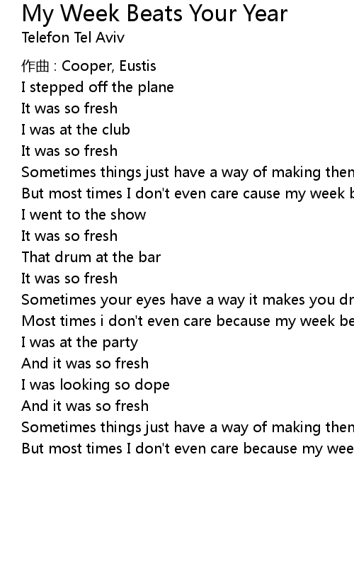 | Song | My Week Beats Your Year |