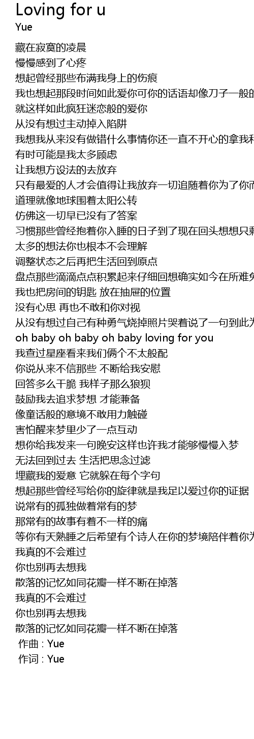 | [00:00.000] | 作曲 : Yue |
